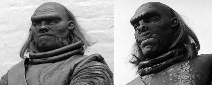 There was a considerable amount of variation between the Ogron costumes and overall quality of the prosthetics, with the ones recycled for Frontier in Space generally looking the more worse for wear.