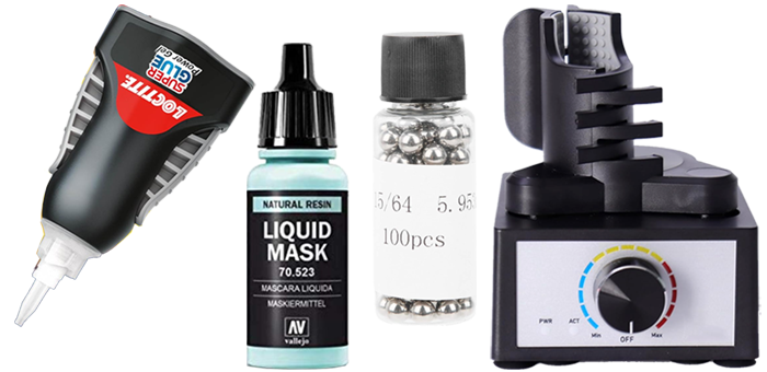Mini Vortex Model Paint Shaker - This is an expensive purchase at £100, but if you end up printing and painting long term, it's a very useful bit of kit to have around, because paint pots will eventually separate and solidify, unless you stir them up by hand regularly... which I guarantee you won't. Works best when you combine it with the paint agitator balls above.