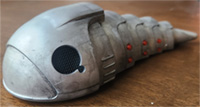 Notes: Several individuals have taken a stab at recreating this prop, but nobody seems to have gotten the proportions exactly right yet. (To be fair, there aren't many good source images.) Edward Baum's version is a hollow clamshell design with a functional button for triggering an internal LED, though I think David Dunlap's version is slightly closer to replicating the overall shape correctly, though none of them include the thumb slider on the right-hand side.